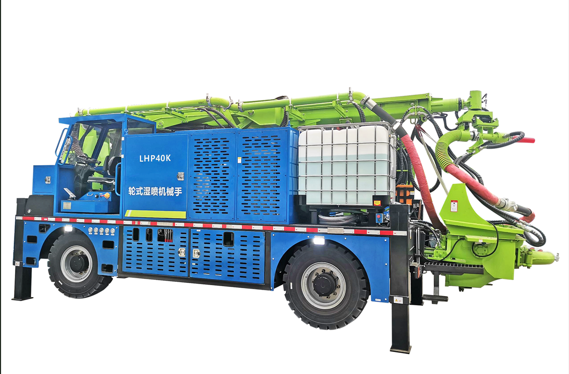 適用于公路鐵路隧道、地下洞庫、水利水電和抽水蓄能電站的隧道錨噴支護作業(yè)。LHP40K輪式濕噴機械手是一款綜合國內(nèi)隧道初支混凝土噴漿工藝及海拔2000米以下地區(qū)施工工況研發(fā) 升級的一款專用設備,最大噴射方量達到40m³/h,廣泛應用于隧道工程、水利工程、市政工程、道路橋 梁工程等。該設備具有噴射方量大、不易堵管、回彈低、性能穩(wěn)定可靠等特點,既適用于全斷面,也適用 于半斷面和多階梯開挖。