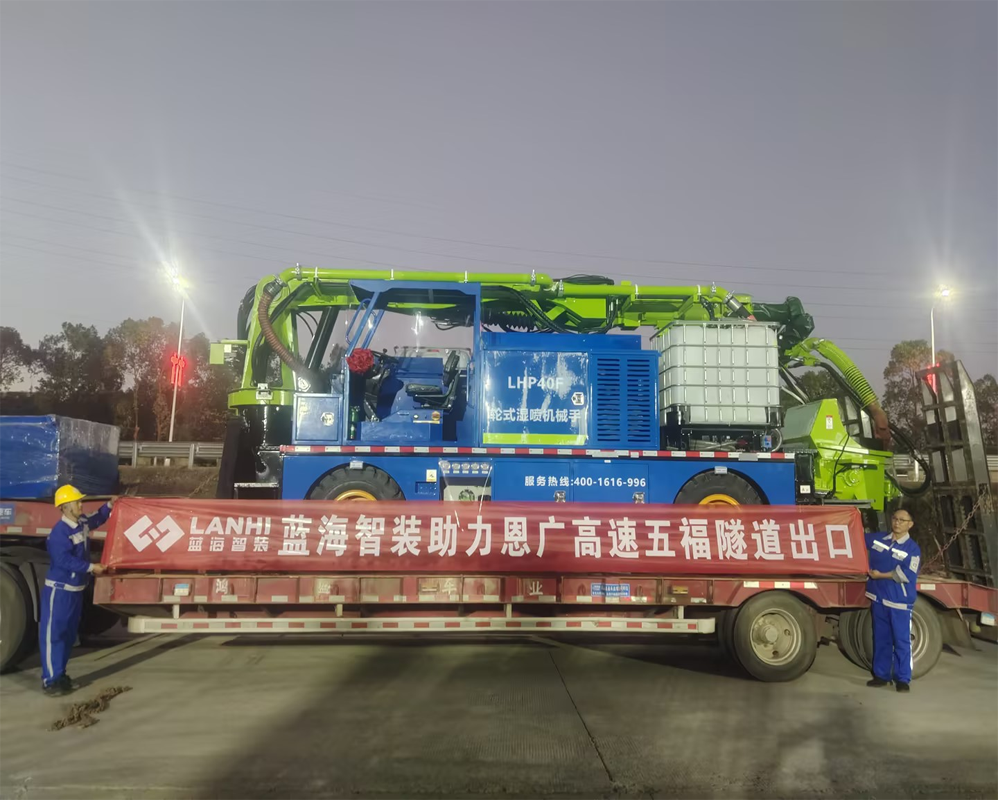 藍(lán)海智裝LCHP40C車載濕噴機(jī)械手助力中鐵十五局劍黎高速劉家?guī)X隧道建設(shè),在減少人力成本,減少施工風(fēng)險(xiǎn),提高效率的同時(shí),實(shí)現(xiàn)隧道立拱的標(biāo)準(zhǔn)化和工廠化.需