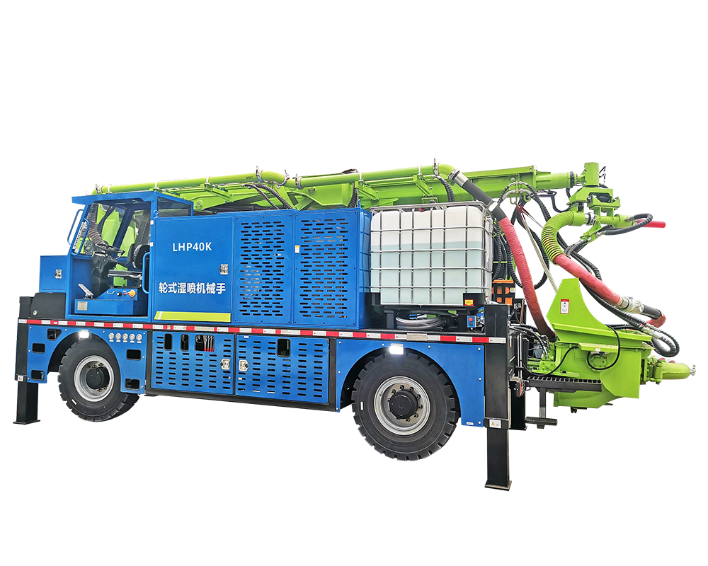 藍(lán)海智裝LHP40K輪式濕噴機(jī)械手是一款綜合國(guó)內(nèi)隧道初支混凝土噴漿工藝及海拔2000米以下地區(qū)施工工況研發(fā)升級(jí)的一款專用設(shè)備,最大噴射方量達(dá)到40m3/h,廣泛應(yīng)用于隧道工程、水利工程、市政工程、道路橋梁工程等。該設(shè)備具有噴射方量大、不易堵管、回彈低、性能穩(wěn)定可靠等特點(diǎn),既適用于全斷面,也適用于半斷面和多階梯開挖。